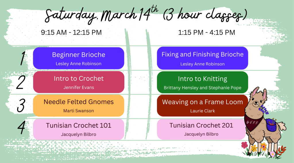 Please note that class registration comes with admission to the vendor hall. All visitors not taking classes should purchase a vendor hall ticket at the above link or plan to buy one at the door.